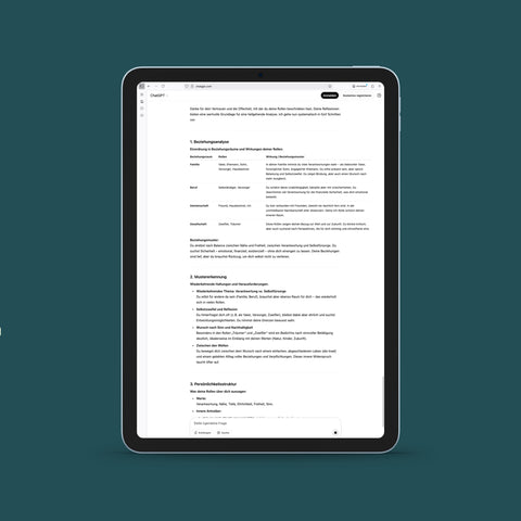 Du erhältst Impulse, die wirklich passen. Keine Worthülsen, sondern kluge Vorschläge auf Basis deiner eigenen Gedanken.