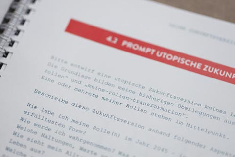 Reflektieren, Weiterdenken, die eigene Zukunft aktiv entwickeln. Mit „prompt up your life“ kann das jeder. Unser Workbook ist die Anleitung, die KI unterstützt Dich dabei.